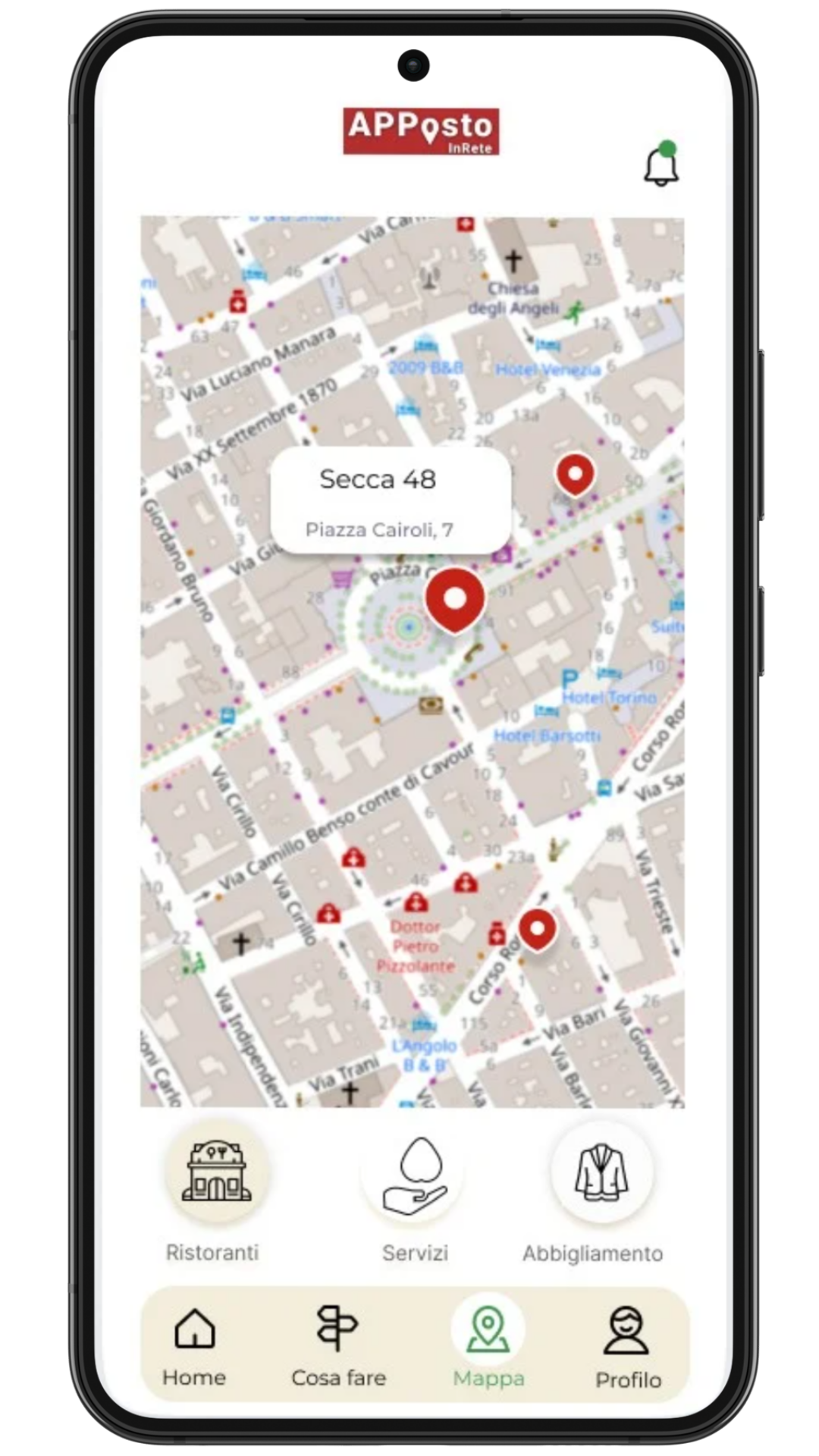Attraverso “Apposto InRete” è possibile scoprire le attività commerciali del territorio, ognuna con una scheda personalizzata che include immagini, descrizione dettagliata, contatti e tutte le informazioni utili per creare un’esperienza unica e coinvolgente.